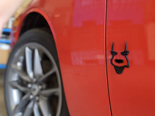 Venom Car Badge - Matte Black on Red - Lightning Font - Tape Mounting