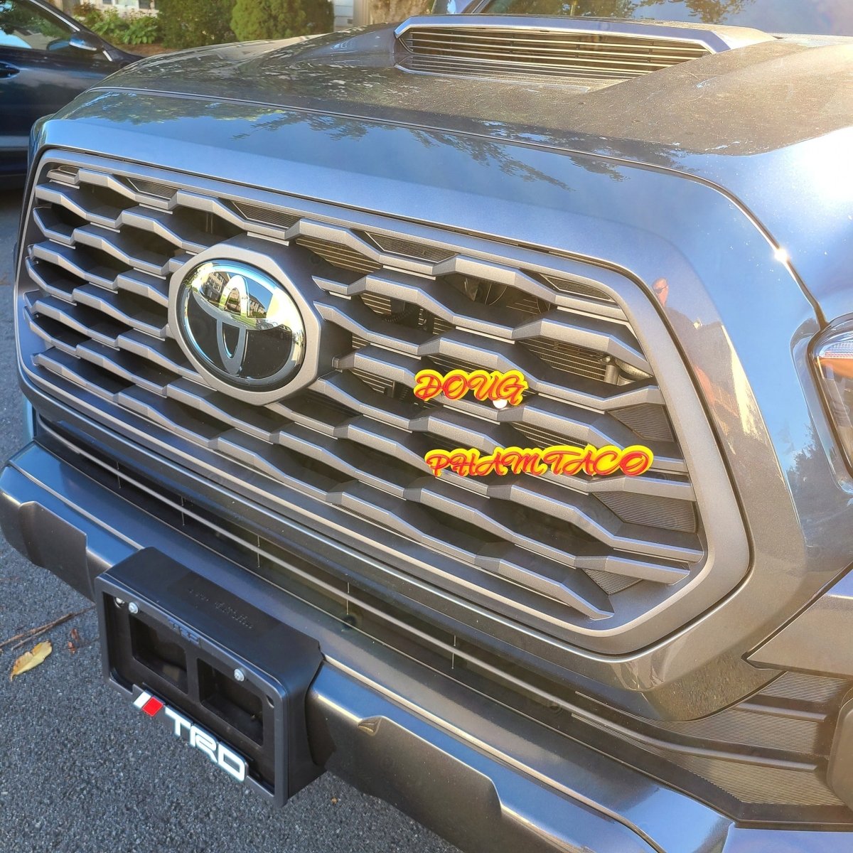 Doug Car Badge - Red On Yellow - Script Font